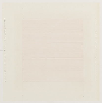 The Beach, 1964 [p. 86] is a black square. At first it appears solidly black. Then I see it is less solid in the bottom right hand corner. I imagine it is a photograph of a beach at night, in which I can, with difficulty, make out several flanks of undulating sand. The more I look, the more sand I see. The sea in the distance is black and invisible. If I put my ear to the page, I hear waves lapping the shore. If I hold the page up to the light, even the black sea is permeated with stars. This page has no number. I'm very careful not to have ideas, says Agnes, because they're inaccurate. There are two inaccuracies in the sea, one is astonishment, two is foam. To be astonished by a poem is to love it. The waves in the sand are the rhythm and the landscape of foam. The lines of the poem are not true lines. They are words of varying sizes placed on the page as though a line were there, but no grid is visible. All lines know that the human soul sees horizontally. I lift my eyes to the groups of words on the opposite page and they appear to me as lines. I bring my meaning to them. To bring meaning has meaning, even as words dissolve. I have learned that meaning is beyond words just as our souls are beyond our minds. That we can tear a book into a thousand small pieces without realizing that we have disintegrated a whole beach and maybe other landscapes too.