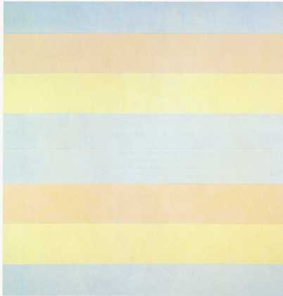 Nelson: Well, it's interesting that you chose these two poems to comment on. I don't find either of them amusing, but I like several things about them. Particularly that their shapes have a relationship to their ideas. The first of the two, 'Happy Holiday, 1999' is cast in right-justified couplets, effectively a series of stripes – and she's responding to a series of red bands in the painting. And she's focussing on the horizontal. Also the idea that different shapes have emotional resonance interests me. And if you accept that this is possible (as it is certainly for both Agnes Martin and Chang herself), the idea of splashing starts to be tenable. I don't think it's gnomic. I think it's surreal. Martin is not a surrealist but Chang often is. The other poem you just mentioned, 'Happiness (from Innocent Love Series, 1999)', is two blocks of five lines – horizontal rectangles – with a thin block in the middle (a sandwich filling). This one is overtly about depression but actually it did make me smile, although I wasn't sure that was the intention. She says the reason she, like Agnes Martin, likes a horizontal line best, is "because its weight is distributed so that more depression can hang from / it like laundry". That's both ridiculous and surreal, isn't it? But after that, I thought she went off the deep end with: "The only way to see if my words are poems is if I crush / them into lines. I do this so no one can see my insides. I've learned that / the words are only poems if, when flattened into a line, the meaning is / still there." The washing line has disappeared and a crushed line of words has taken over.